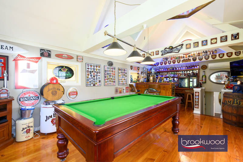 Almost-secret doors lead up and down from the living room – a detail that delights every time. Up takes you to a spectacular man cave with a bar, room for a billiard table, and a north-facing deck with views across the Hills. Down leads to the principal suite: a private retreat with timber wainscoting, a walk-in wardrobe and dressing room, and an ensuite.